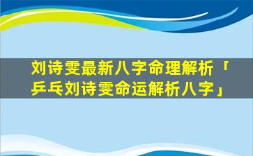 1、刘诗雯 ☘ 最新八字命 🪴 理解析