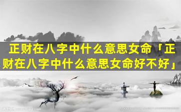 女命 🐘 八字中 🦉 正财的吉 💐 凶