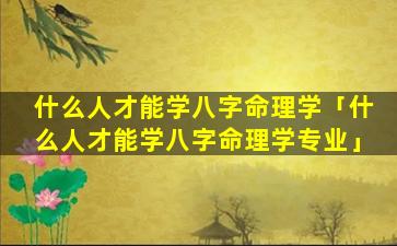 适合学习八字命 🌹 理学知 🐴 识的 🌸 人群:
