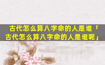 1、古代怎 🦟 么算八 🐳 字命的人是谁