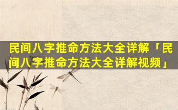2、民 🐶 间八字推命方法大全详解视频 🐱