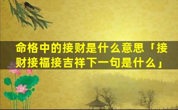 3、命 🐯 格中的接财是 🐶 什么意思啊