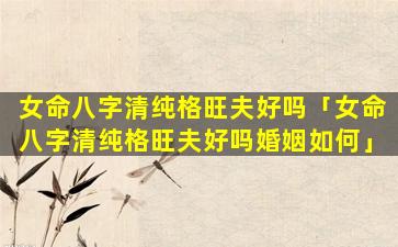 女命八 🌳 字清 🐝 纯 🐦 格旺夫婚姻