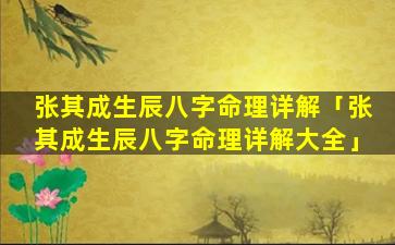 1、张其成生辰八字 🦆 命 🐬 理详解