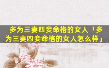 1、多为三妻 🐎 四妾 🐡 命格的女人
