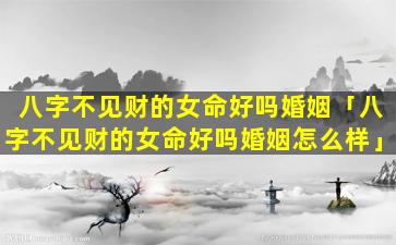 2、八 🌲 字不见财的女命好吗婚姻怎么样