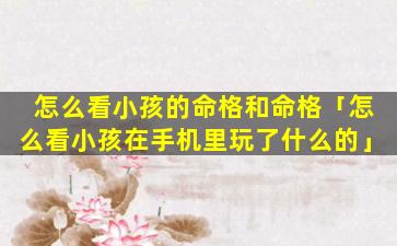 3、怎么看小孩的 🐡 命格 🦢 和命格好不好