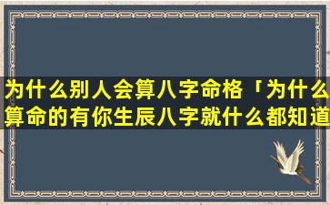 2、为什么 🌴 算命的有你生辰八字就什么都知道了