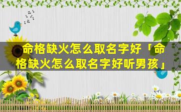2、命格缺 🦈 火怎么取名字好听男孩 🌴