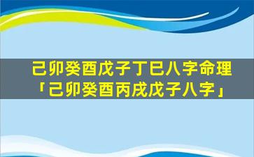 1、己卯癸酉戊子 🌹 丁巳八字命理