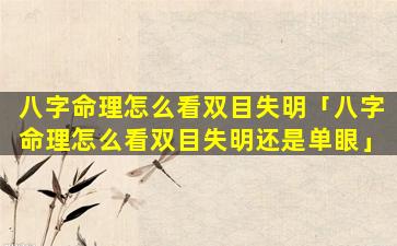 2、八字 🐟 命理怎么看双目失明还是单眼