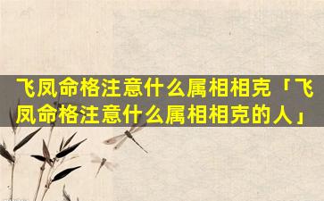 1、飞凤命 🦢 格注 🐼 意什么属相相克