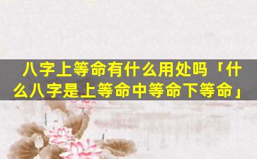 1、八字上等命有 🐎 什么用处吗