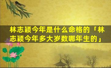 4、林志颖今年 🐧 是什 🐱 么命格的呢