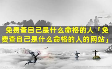 1、免 🌾 费查自 🐬 己是什么命格的人
