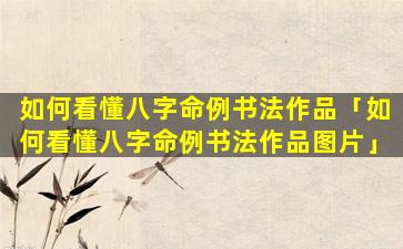 2、如何看懂八 🌿 字命例书 🕸 法作品图片