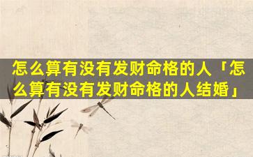 2、怎么算有没 🌴 有发财命格的人结婚 🌾