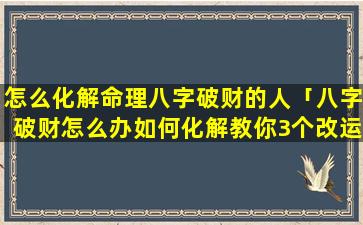 3、怎么化解命 🐝 理八字破财 🍀 的人的命运
