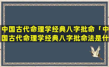 2、中 🐎 国古代命理学经典八字批命法是什么