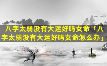 2、八字太弱 🐴 没有大运好吗女 🐅 命怎么办