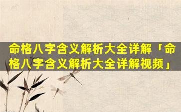 命格 🐠 八字含义解析大全详解 🌲 视频