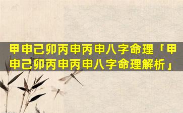 2、甲申己卯丙 🦉 申丙申八字命理解析