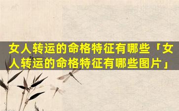 女人转 🐳 运的命格 🦅 特 🦟 征: