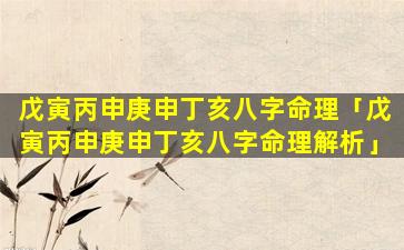 3、戊寅丙申庚申丁亥八字命理详解 🐦