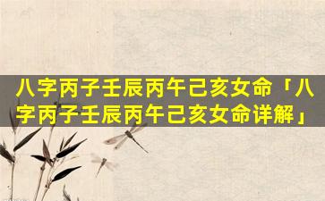 丙子壬辰丙午 🌴 己亥 💐 女命 🐼 详解