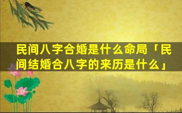2、民间结 🐵 婚合八字的来历是什 🦟 么?
