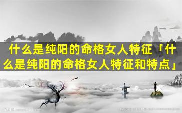 1、什么是纯阳的命 🕷 格女人特 🕊 征