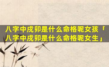 1、八字中戌 🌻 卯是什么命格呢女 🐡 孩