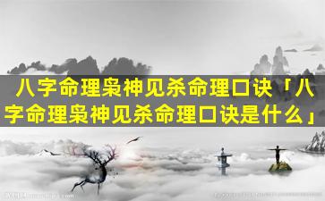 1、八 💮 字命理枭 🌴 神见杀命理口诀