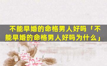 1、不 🕊 能早婚的命格男人好 🌼 吗