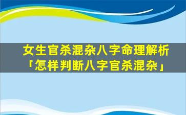 1、女生官杀混 💐 杂八字命理 🐋 解析