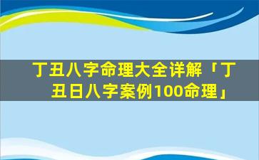 3、丁 🐛 丑八字命理大全详解视频