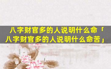 2、八字 🐵 财官多的人说明什么命 🌹 苦
