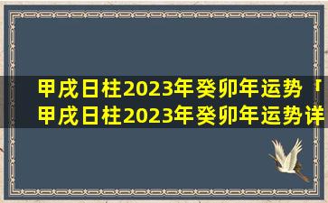 甲戌日柱 2023年 🐞 癸卯年运势 🐛 详解