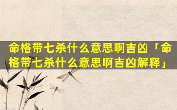2、命格带七杀什么意思啊吉凶 🌸 解释