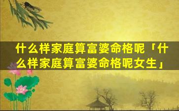 3、什么样家 🐝 庭算富婆命格呢知乎