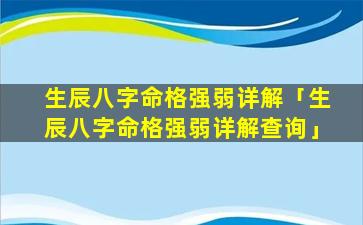 生辰 🐳 八字命格强 🐴 弱详解查询