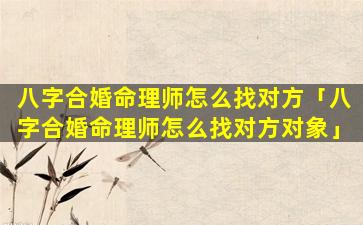 如何寻找合婚命理师 🐳 帮助寻找伴侣