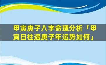 甲 🕸 寅日柱遇庚子年运 🦅 势