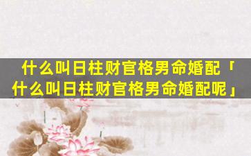 2、什么叫 🌴 日柱财官格男命婚配呢