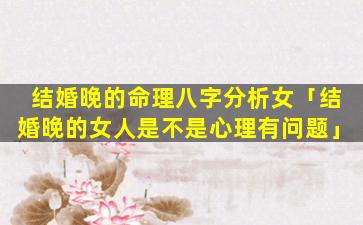 1、结婚晚 🐞 的命理八字分析 🦈 女