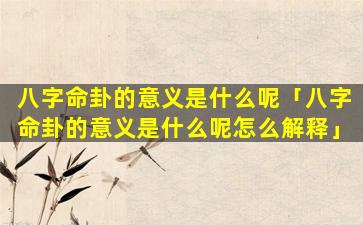3、八字命 🌳 卦 💮 的意义是什么呢图片