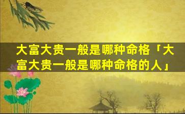 1、大富大贵一般 🦢 是哪种命格