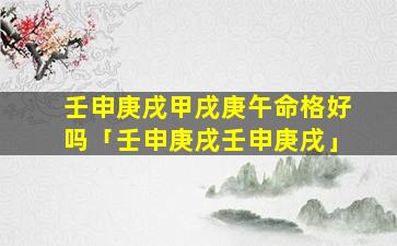 1、壬申庚戌 🐧 甲 🐅 戌庚午命格好吗