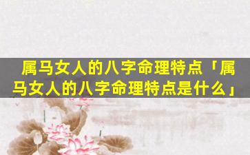属马女人 🦅 的 🐎 性格特 🦊 点: