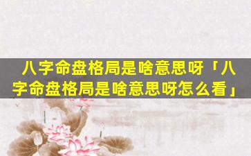1、八字命盘格局是 🦁 啥意 🐅 思呀